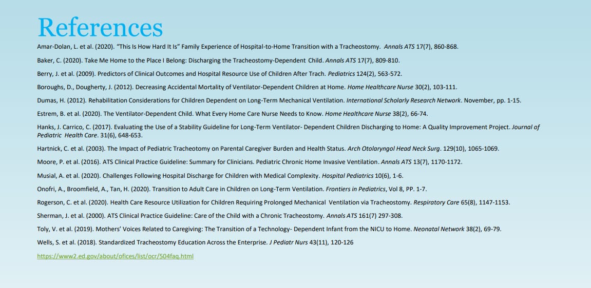 - Rehabilitation Considerations for Children Dependent on Long-Term Mechanical Ventilation 2012